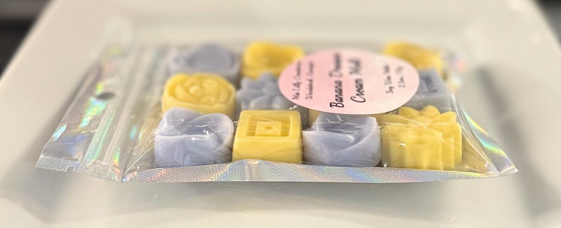 Treat your senses to a tropical escape with our 12-pack of Banana Dream Cream Wax Melts! Handcrafted with love by Mia Lilly Creations, these delightful melts feature a dreamy blend of ripe banana and sweet cream in charming assorted shapes. Whether you’re setting the mood for a relaxing evening or adding a burst of fruity fragrance to your space, these soy wax melts are an absolute must-have!