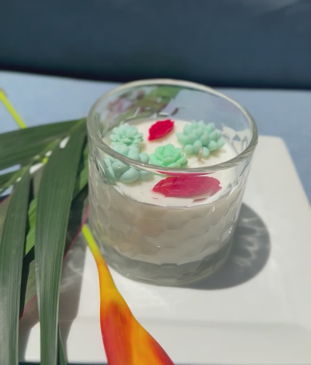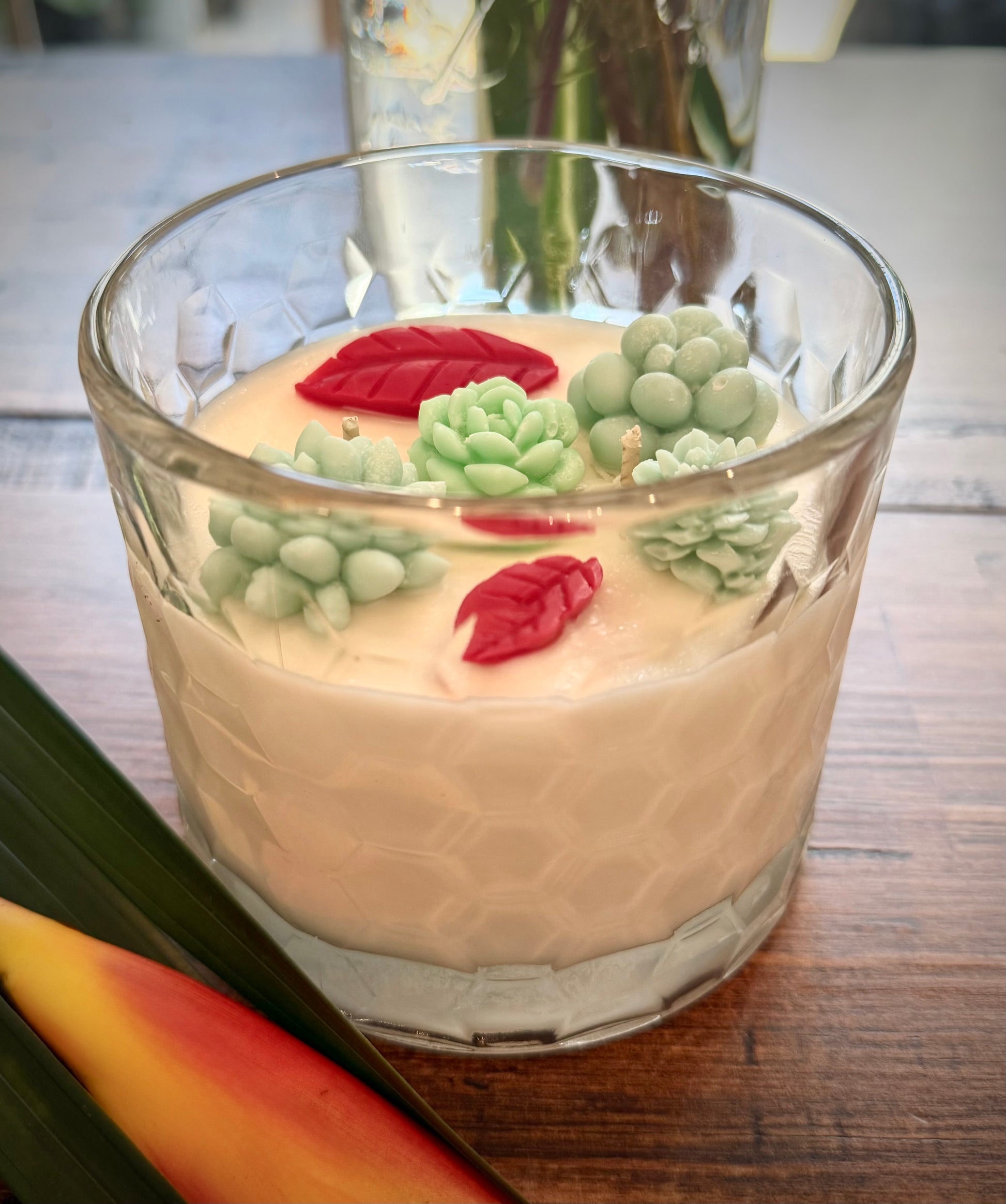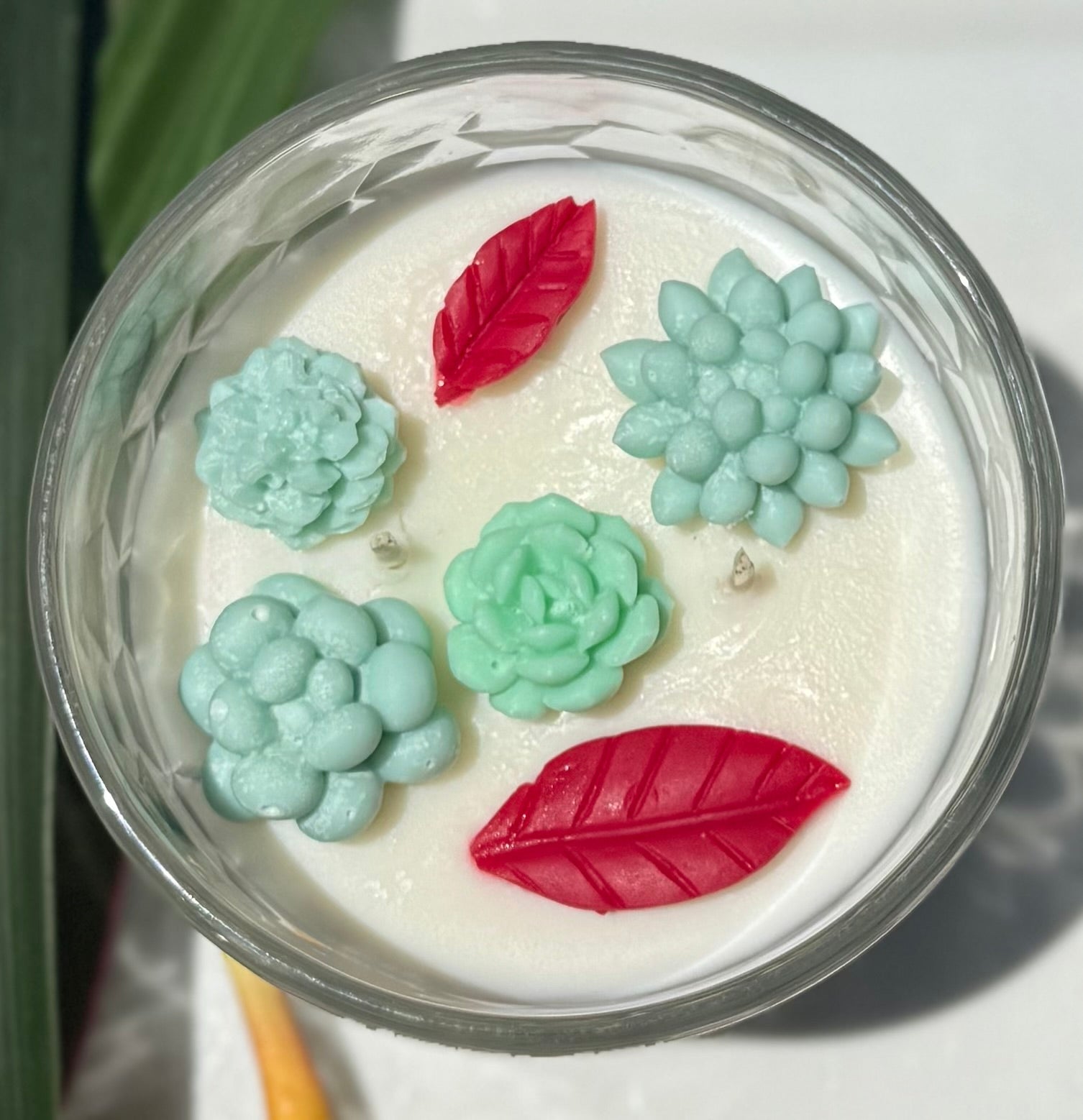 • Design: Hand-poured with hand-crafted wax succulents and leaves